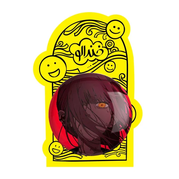 پیکسل بزرگ ماکیما انیمه مرد اره ای Chainsaw Man خندالو با روکش سلفون حرارتی مات مخملی ضدخش و قطعه پشتی فلزی تولید می شود. قطعات پشت پیکسل های خندالو با سوزن یک تکه ثابت و بدون لغزش و جا به جایی، ایستایی بسیار خوبی دارند که این مهم در تولید پیکسل های 58 میلیمتری نیز رعایت شده است.