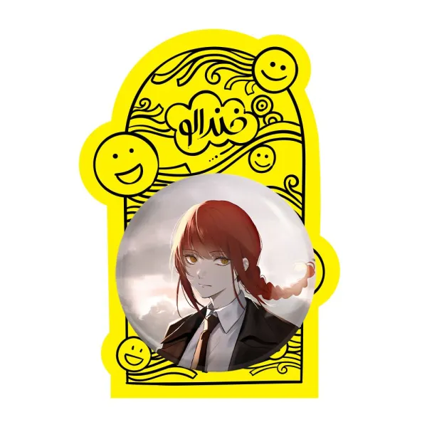 پیکسل بزرگ ماکیما انیمه مرد اره ای Chainsaw Man خندالو با روکش سلفون حرارتی مات مخملی ضدخش و قطعه پشتی فلزی تولید می شود. قطعات پشت پیکسل های خندالو با سوزن یک تکه ثابت و بدون لغزش و جا به جایی، ایستایی بسیار خوبی دارند که این مهم در تولید پیکسل های 58 میلیمتری نیز رعایت شده است.