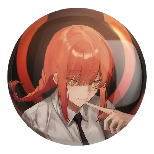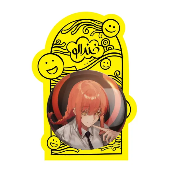 پیکسل بزرگ ماکیما انیمه مرد اره ای Chainsaw Man خندالو با روکش سلفون حرارتی مات مخملی ضدخش و قطعه پشتی فلزی تولید می شود. قطعات پشت پیکسل های خندالو با سوزن یک تکه ثابت و بدون لغزش و جا به جایی، ایستایی بسیار خوبی دارند که این مهم در تولید پیکسل های 58 میلیمتری نیز رعایت شده است.