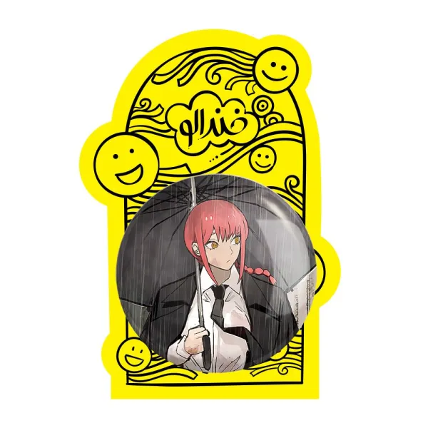 پیکسل بزرگ ماکیما انیمه مرد اره ای Chainsaw Man خندالو با روکش سلفون حرارتی مات مخملی ضدخش و قطعه پشتی فلزی تولید می شود. قطعات پشت پیکسل های خندالو با سوزن یک تکه ثابت و بدون لغزش و جا به جایی، ایستایی بسیار خوبی دارند که این مهم در تولید پیکسل های 58 میلیمتری نیز رعایت شده است.