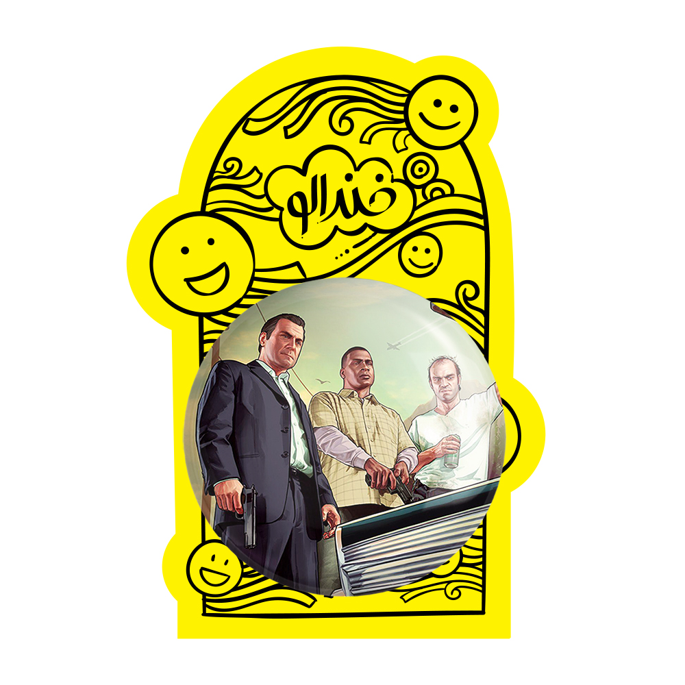 پیکسل بزرگ مایکل و ترور فرانکلین جی تی ای GTA خندالو با روکش سلفون حرارتی مات مخملی ضدخش و قطعه پشتی فلزی تولید می شود. قطعات پشت پیکسل های خندالو با سوزن یک تکه ثابت و بدون لغزش و جا به جایی، ایستایی بسیار خوبی دارند که این مهم در تولید پیکسل های 58 میلیمتری نیز رعایت شده است.