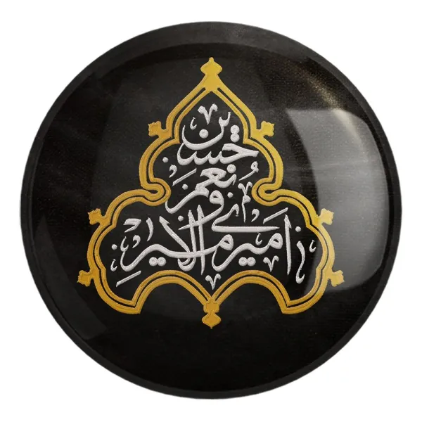 پیکسل بزرگ محرم امیری حسین و نعم الامیر خندالو با روکش سلفون حرارتی مات مخملی ضدخش و قطعه پشتی فلزی تولید می شود. قطعات پشت پیکسل های خندالو با سوزن یک تکه ثابت و بدون لغزش و جا به جایی، ایستایی بسیار خوبی دارند که این مهم در تولید پیکسل های 58 میلیمتری نیز رعایت شده است.