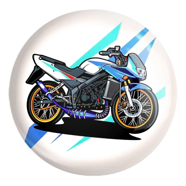 پیکسل بزرگ موتور سیکلت خندالو با روکش سلفون حرارتی مات مخملی ضدخش و قطعه پشتی فلزی تولید می شود. قطعات پشت پیکسل های خندالو با سوزن یک تکه ثابت و بدون لغزش و جا به جایی، ایستایی بسیار خوبی دارند که این مهم در تولید پیکسل های 58 میلیمتری نیز رعایت شده است.