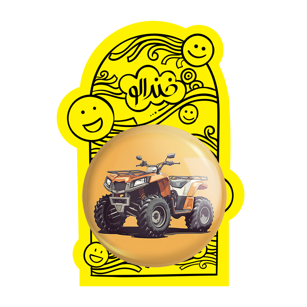 پیکسل بزرگ موتور چهار چرخ خندالو با روکش سلفون حرارتی مات مخملی ضدخش و قطعه پشتی فلزی تولید می شود. قطعات پشت پیکسل های خندالو با سوزن یک تکه ثابت و بدون لغزش و جا به جایی، ایستایی بسیار خوبی دارند که این مهم در تولید پیکسل های 58 میلیمتری نیز رعایت شده است.