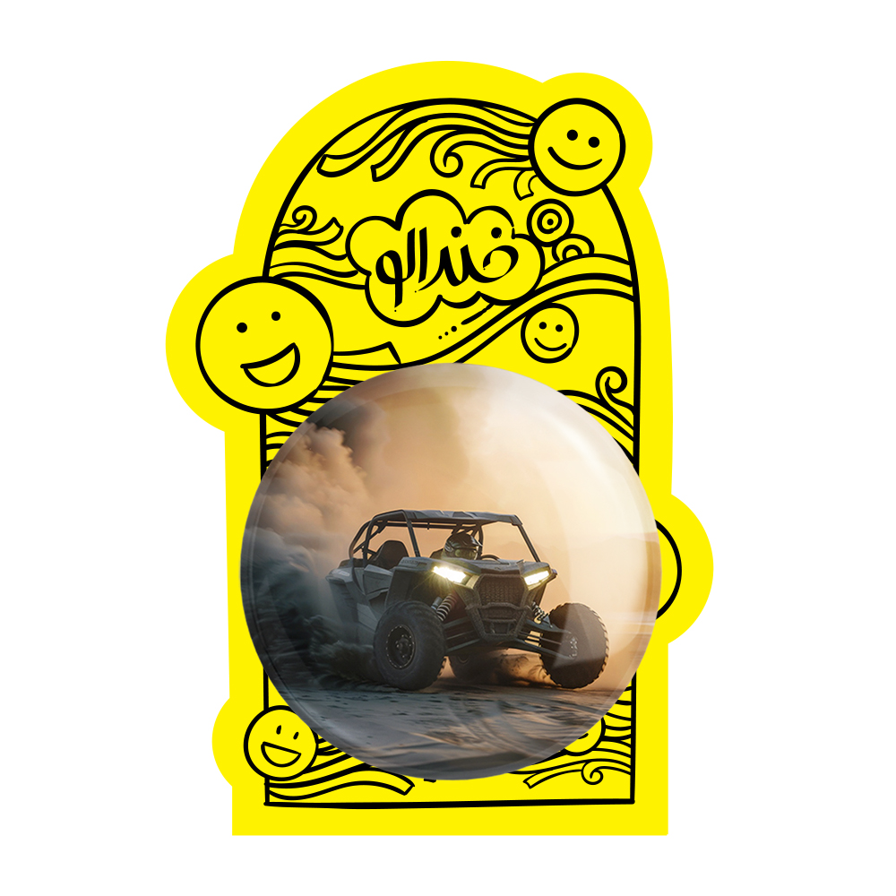 پیکسل بزرگ موتور چهار چرخ خندالو با روکش سلفون حرارتی مات مخملی ضدخش و قطعه پشتی فلزی تولید می شود. قطعات پشت پیکسل های خندالو با سوزن یک تکه ثابت و بدون لغزش و جا به جایی، ایستایی بسیار خوبی دارند که این مهم در تولید پیکسل های 58 میلیمتری نیز رعایت شده است.