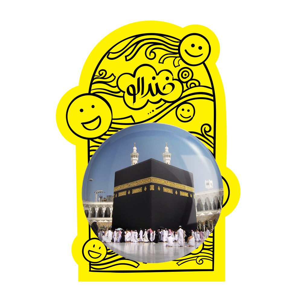 پیکسل بزرگ مکه خندالو با روکش سلفون حرارتی مات مخملی ضدخش و قطعه پشتی فلزی تولید می شود. قطعات پشت پیکسل های خندالو با سوزن یک تکه ثابت و بدون لغزش و جا به جایی، ایستایی بسیار خوبی دارند که این مهم در تولید پیکسل های 58 میلیمتری نیز رعایت شده است.