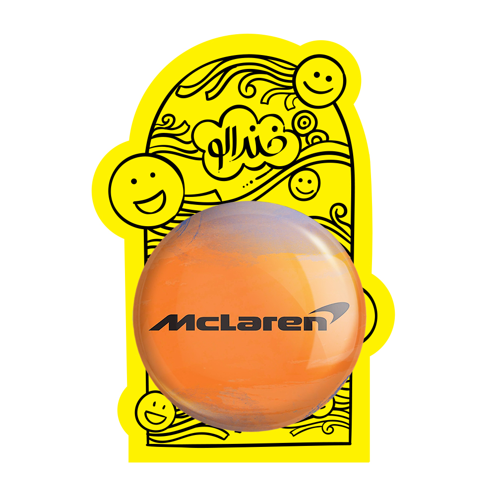 پیکسل بزرگ مک لارن Mclaren خندالو با روکش سلفون حرارتی مات مخملی ضدخش و قطعه پشتی فلزی تولید می شود. قطعات پشت پیکسل های خندالو با سوزن یک تکه ثابت و بدون لغزش و جا به جایی، ایستایی بسیار خوبی دارند که این مهم در تولید پیکسل های 58 میلیمتری نیز رعایت شده است.