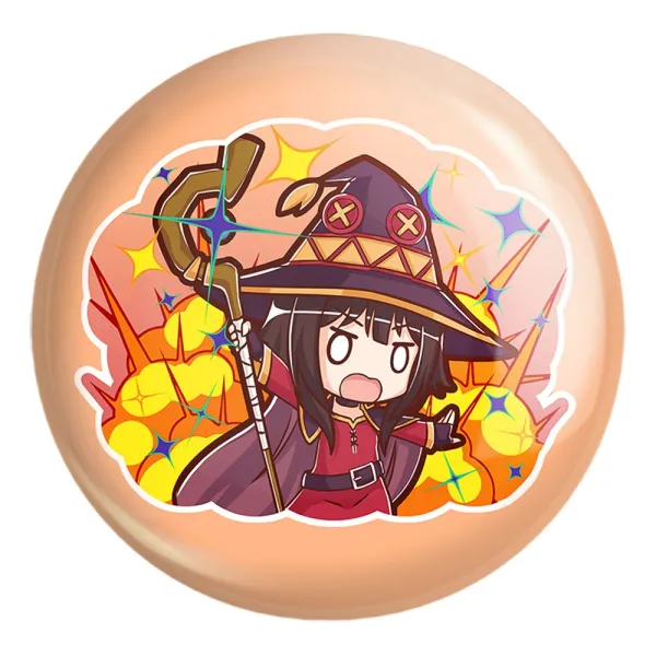 پیکسل بزرگ مگومین انیمه کونوسوبا Konosuba خندالو با روکش سلفون حرارتی مات مخملی ضدخش و قطعه پشتی فلزی تولید می شود. قطعات پشت پیکسل های خندالو با سوزن یک تکه ثابت و بدون لغزش و جا به جایی، ایستایی بسیار خوبی دارند که این مهم در تولید پیکسل های 58 میلیمتری نیز رعایت شده است.