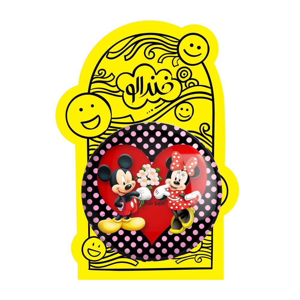 پیکسل بزرگ میکی موس Mickey Mouse خندالو با روکش سلفون حرارتی مات مخملی ضدخش و قطعه پشتی فلزی تولید می شود. قطعات پشت پیکسل های خندالو با سوزن یک تکه ثابت و بدون لغزش و جا به جایی، ایستایی بسیار خوبی دارند که این مهم در تولید پیکسل های 58 میلیمتری نیز رعایت شده است.