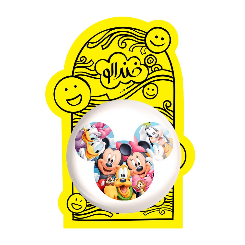 پیکسل بزرگ میکی موس Mickey Mouse خندالو با روکش سلفون حرارتی مات مخملی ضدخش و قطعه پشتی فلزی تولید می شود. قطعات پشت پیکسل های خندالو با سوزن یک تکه ثابت و بدون لغزش و جا به جایی، ایستایی بسیار خوبی دارند که این مهم در تولید پیکسل های 58 میلیمتری نیز رعایت شده است.