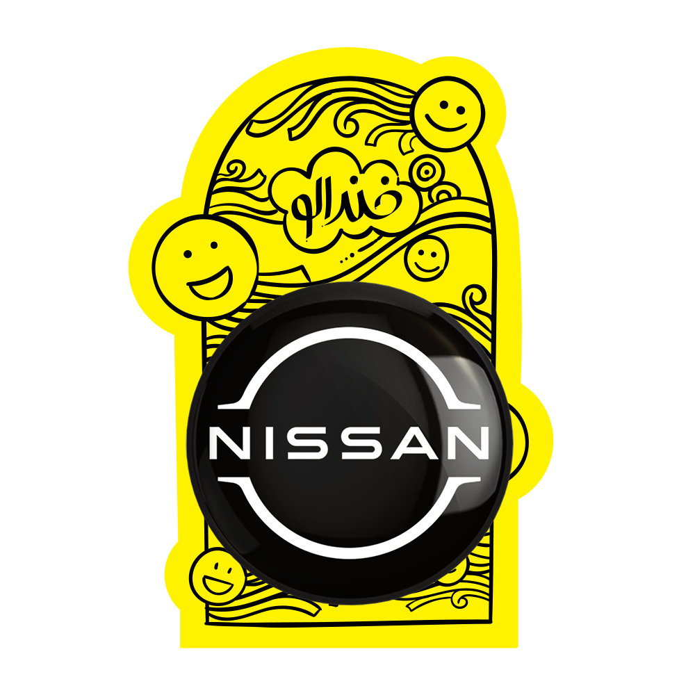 پیکسل بزرگ نیسان Nissan خندالو با روکش سلفون حرارتی مات مخملی ضدخش و قطعه پشتی فلزی تولید می شود. قطعات پشت پیکسل های خندالو با سوزن یک تکه ثابت و بدون لغزش و جا به جایی، ایستایی بسیار خوبی دارند که این مهم در تولید پیکسل های 58 میلیمتری نیز رعایت شده است.