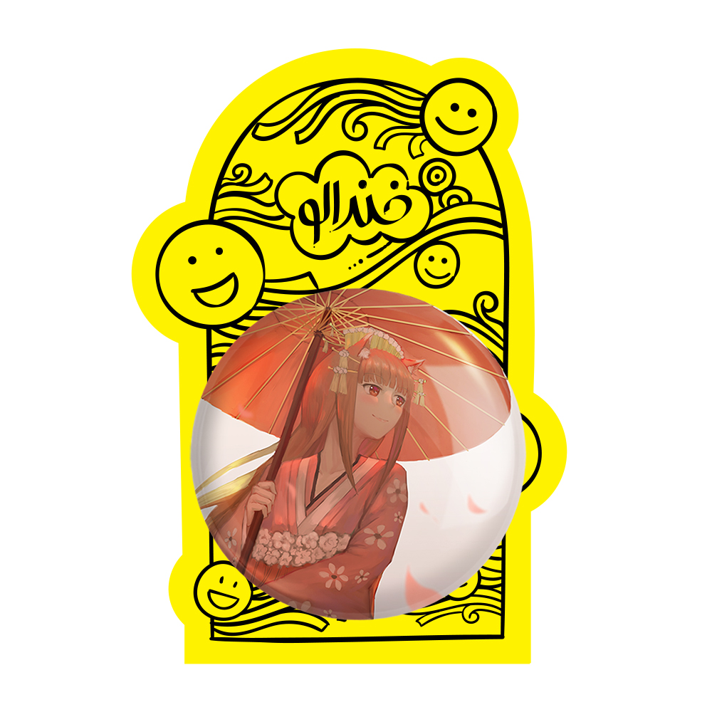 پیکسل بزرگ هولو انیمه ادویه و گرگ خندالو با روکش سلفون حرارتی مات مخملی ضدخش و قطعه پشتی فلزی تولید می شود. قطعات پشت پیکسل های خندالو با سوزن یک تکه ثابت و بدون لغزش و جا به جایی، ایستایی بسیار خوبی دارند که این مهم در تولید پیکسل های 58 میلیمتری نیز رعایت شده است.