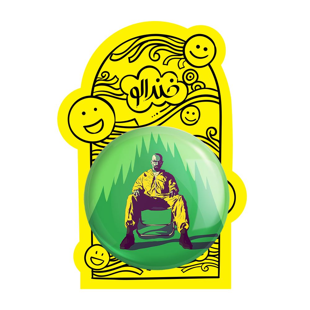پیکسل بزرگ والتر وایت سریال بریکینگ بد Breaking Bad خندالو با روکش سلفون حرارتی مات مخملی ضدخش و قطعه پشتی فلزی تولید می شود. قطعات پشت پیکسل های خندالو با سوزن یک تکه ثابت و بدون لغزش و جا به جایی، ایستایی بسیار خوبی دارند که این مهم در تولید پیکسل های 58 میلیمتری نیز رعایت شده است.