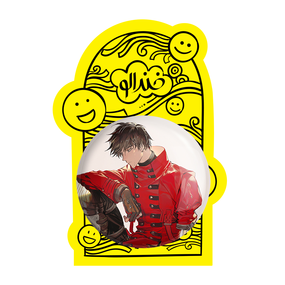 پیکسل بزرگ وش انیمه تریگان (Trigun) خندالو با روکش سلفون حرارتی مات مخملی ضدخش و قطعه پشتی فلزی تولید می شود. قطعات پشت پیکسل های خندالو با سوزن یک تکه ثابت و بدون لغزش و جا به جایی، ایستایی بسیار خوبی دارند که این مهم در تولید پیکسل های 58 میلیمتری نیز رعایت شده است.