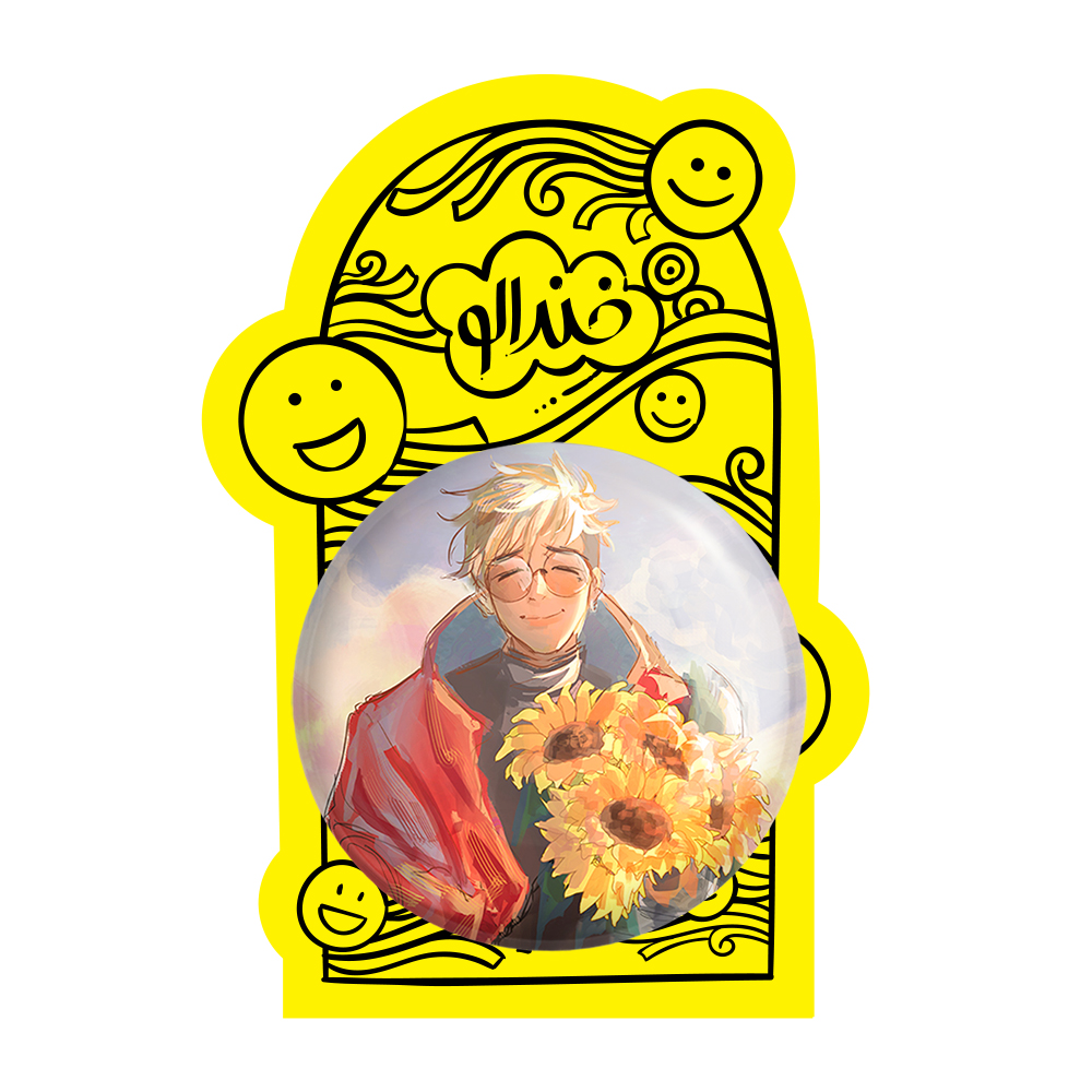 پیکسل بزرگ وش انیمه تریگان (Trigun) خندالو با روکش سلفون حرارتی مات مخملی ضدخش و قطعه پشتی فلزی تولید می شود. قطعات پشت پیکسل های خندالو با سوزن یک تکه ثابت و بدون لغزش و جا به جایی، ایستایی بسیار خوبی دارند که این مهم در تولید پیکسل های 58 میلیمتری نیز رعایت شده است.