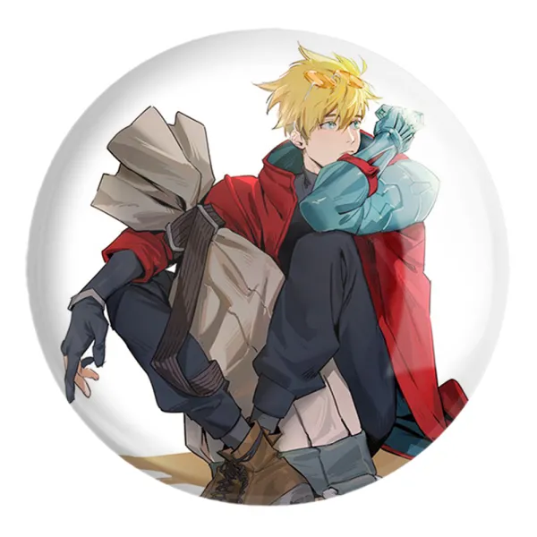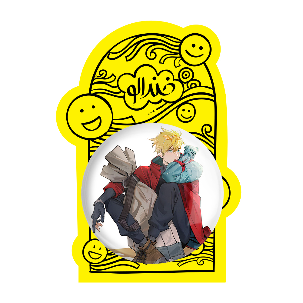 پیکسل بزرگ وش انیمه تریگان (Trigun) خندالو با روکش سلفون حرارتی مات مخملی ضدخش و قطعه پشتی فلزی تولید می شود. قطعات پشت پیکسل های خندالو با سوزن یک تکه ثابت و بدون لغزش و جا به جایی، ایستایی بسیار خوبی دارند که این مهم در تولید پیکسل های 58 میلیمتری نیز رعایت شده است.