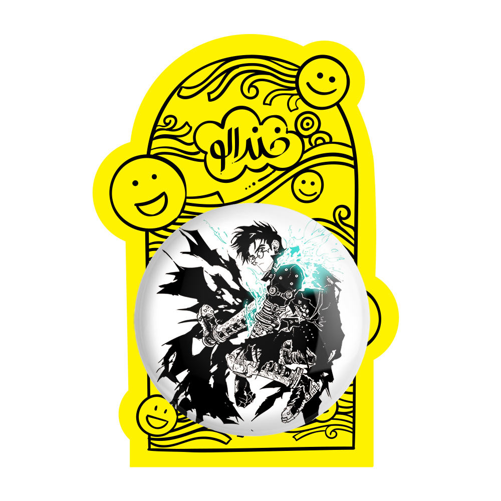 پیکسل بزرگ وش انیمه تریگان (Trigun) خندالو با روکش سلفون حرارتی مات مخملی ضدخش و قطعه پشتی فلزی تولید می شود. قطعات پشت پیکسل های خندالو با سوزن یک تکه ثابت و بدون لغزش و جا به جایی، ایستایی بسیار خوبی دارند که این مهم در تولید پیکسل های 58 میلیمتری نیز رعایت شده است.