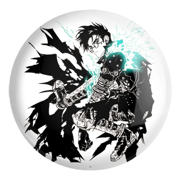 پیکسل بزرگ وش انیمه تریگان (Trigun) خندالو با روکش سلفون حرارتی مات مخملی ضدخش و قطعه پشتی فلزی تولید می شود. قطعات پشت پیکسل های خندالو با سوزن یک تکه ثابت و بدون لغزش و جا به جایی، ایستایی بسیار خوبی دارند که این مهم در تولید پیکسل های 58 میلیمتری نیز رعایت شده است.