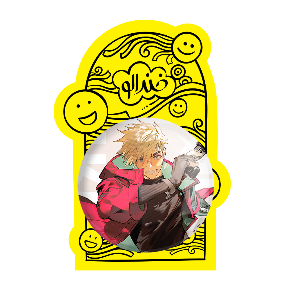 پیکسل بزرگ وش انیمه تریگان (Trigun) خندالو با روکش سلفون حرارتی مات مخملی ضدخش و قطعه پشتی فلزی تولید می شود. قطعات پشت پیکسل های خندالو با سوزن یک تکه ثابت و بدون لغزش و جا به جایی، ایستایی بسیار خوبی دارند که این مهم در تولید پیکسل های 58 میلیمتری نیز رعایت شده است.