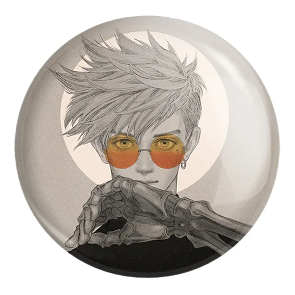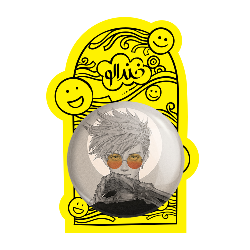 پیکسل بزرگ وش انیمه تریگان (Trigun) خندالو با روکش سلفون حرارتی مات مخملی ضدخش و قطعه پشتی فلزی تولید می شود. قطعات پشت پیکسل های خندالو با سوزن یک تکه ثابت و بدون لغزش و جا به جایی، ایستایی بسیار خوبی دارند که این مهم در تولید پیکسل های 58 میلیمتری نیز رعایت شده است.