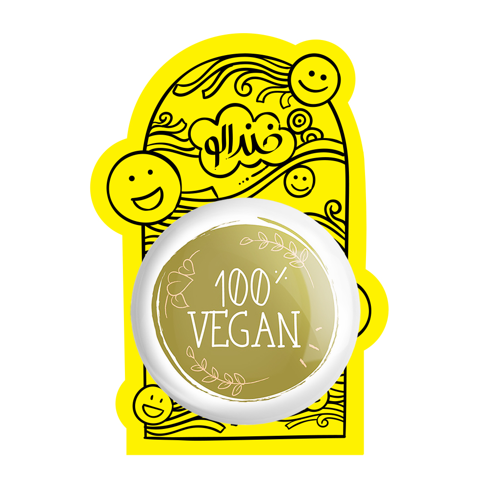 پیکسل بزرگ وگن Vegan خندالو با روکش سلفون حرارتی مات مخملی ضدخش و قطعه پشتی فلزی تولید می شود. قطعات پشت پیکسل های خندالو با سوزن یک تکه ثابت و بدون لغزش و جا به جایی، ایستایی بسیار خوبی دارند که این مهم در تولید پیکسل های 58 میلیمتری نیز رعایت شده است.