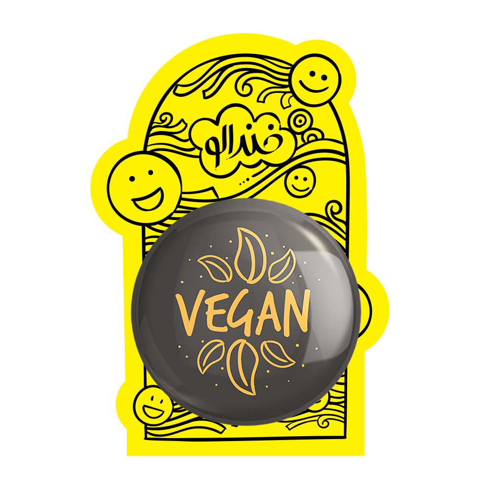 پیکسل بزرگ وگن Vegan خندالو با روکش سلفون حرارتی مات مخملی ضدخش و قطعه پشتی فلزی تولید می شود. قطعات پشت پیکسل های خندالو با سوزن یک تکه ثابت و بدون لغزش و جا به جایی، ایستایی بسیار خوبی دارند که این مهم در تولید پیکسل های 58 میلیمتری نیز رعایت شده است.