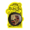 پیکسل بزرگ پورشه Porsche خندالو با روکش سلفون حرارتی مات مخملی ضدخش و قطعه پشتی فلزی تولید می شود. قطعات پشت پیکسل های خندالو با سوزن یک تکه ثابت و بدون لغزش و جا به جایی، ایستایی بسیار خوبی دارند که این مهم در تولید پیکسل های 58 میلیمتری نیز رعایت شده است.