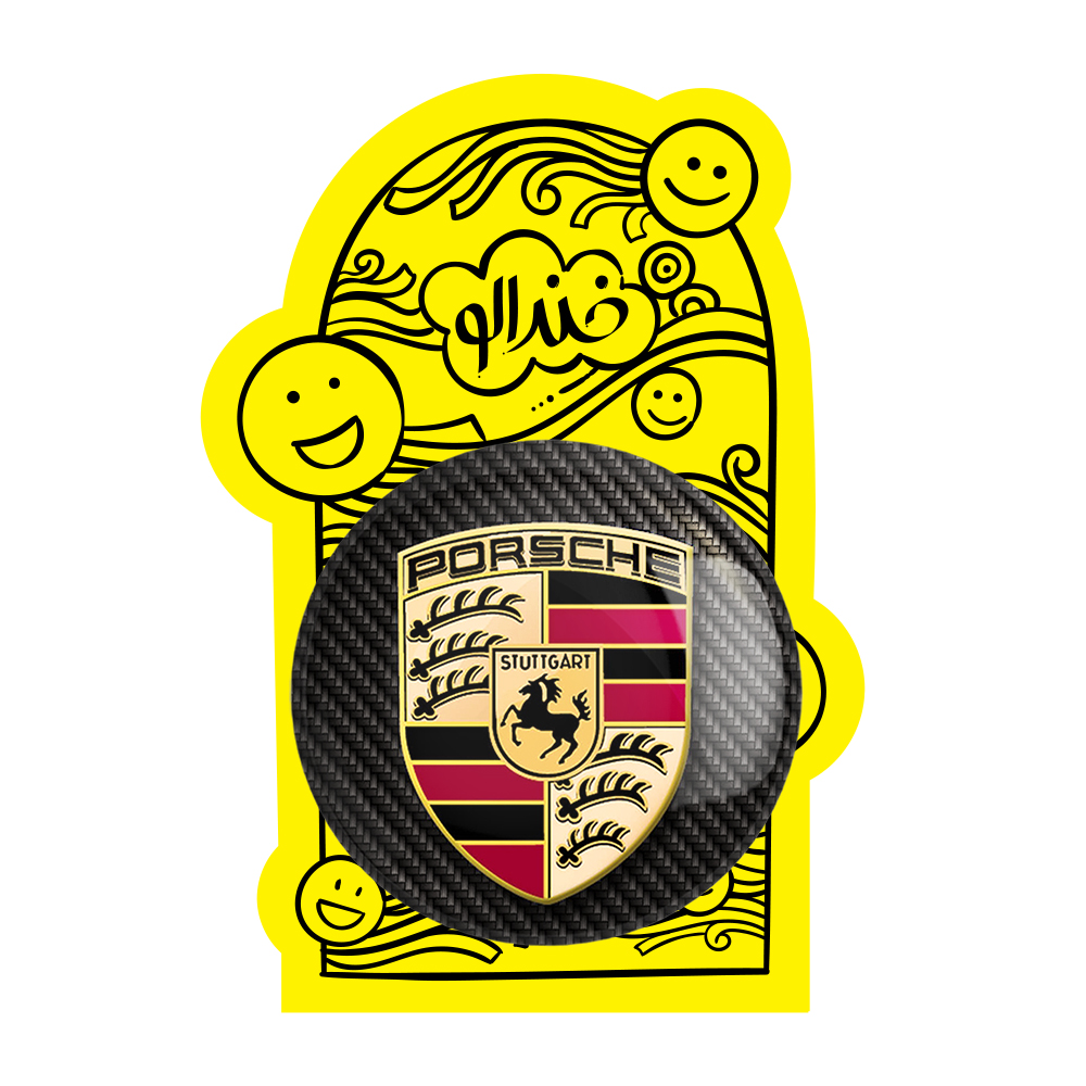 پیکسل بزرگ پورشه Porsche خندالو با روکش سلفون حرارتی مات مخملی ضدخش و قطعه پشتی فلزی تولید می شود. قطعات پشت پیکسل های خندالو با سوزن یک تکه ثابت و بدون لغزش و جا به جایی، ایستایی بسیار خوبی دارند که این مهم در تولید پیکسل های 58 میلیمتری نیز رعایت شده است.