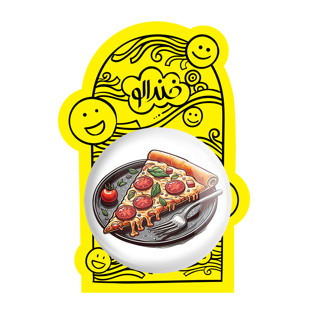 پیکسل بزرگ پیتزا Pizza خندالو با روکش سلفون حرارتی مات مخملی ضدخش و قطعه پشتی فلزی تولید می شود. قطعات پشت پیکسل های خندالو با سوزن یک تکه ثابت و بدون لغزش و جا به جایی، ایستایی بسیار خوبی دارند که این مهم در تولید پیکسل های 58 میلیمتری نیز رعایت شده است.