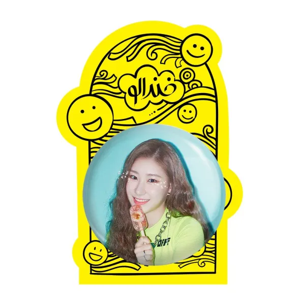 پیکسل بزرگ چریونگ گروه ایتزی ITZY خندالو با روکش سلفون حرارتی مات مخملی ضدخش و قطعه پشتی فلزی تولید می شود. قطعات پشت پیکسل های خندالو با سوزن یک تکه ثابت و بدون لغزش و جا به جایی، ایستایی بسیار خوبی دارند که این مهم در تولید پیکسل های 58 میلیمتری نیز رعایت شده است.