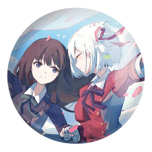 پیکسل بزرگ چیساتو و تاکینا انیمه لیکوریس ریکویل Lycoris Recoil خندالو با روکش سلفون حرارتی مات مخملی ضدخش و قطعه پشتی فلزی تولید می شود. قطعات پشت پیکسل های خندالو با سوزن یک تکه ثابت و بدون لغزش و جا به جایی، ایستایی بسیار خوبی دارند که این مهم در تولید پیکسل های 58 میلیمتری نیز رعایت شده است.