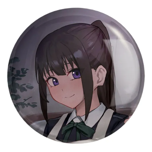 پیکسل بزرگ چیساتو و تاکینا انیمه لیکوریس ریکویل Lycoris Recoil خندالو با روکش سلفون حرارتی مات مخملی ضدخش و قطعه پشتی فلزی تولید می شود. قطعات پشت پیکسل های خندالو با سوزن یک تکه ثابت و بدون لغزش و جا به جایی، ایستایی بسیار خوبی دارند که این مهم در تولید پیکسل های 58 میلیمتری نیز رعایت شده است.