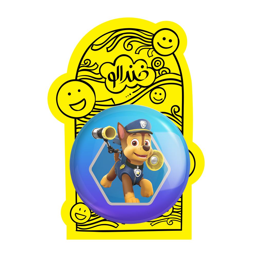 پیکسل بزرگ چیس سگ های نگهبان Paw Patrol خندالو با روکش سلفون حرارتی مات مخملی ضدخش و قطعه پشتی فلزی تولید می شود. قطعات پشت پیکسل های خندالو با سوزن یک تکه ثابت و بدون لغزش و جا به جایی، ایستایی بسیار خوبی دارند که این مهم در تولید پیکسل های 58 میلیمتری نیز رعایت شده است.