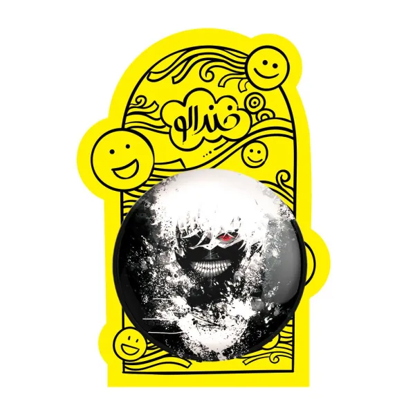 پیکسل بزرگ کانکی کن انیمه توکیو غول Tokyo Ghoul خندالو با روکش سلفون حرارتی مات مخملی ضدخش و قطعه پشتی فلزی تولید می شود. قطعات پشت پیکسل های خندالو با سوزن یک تکه ثابت و بدون لغزش و جا به جایی، ایستایی بسیار خوبی دارند که این مهم در تولید پیکسل های 58 میلیمتری نیز رعایت شده است.