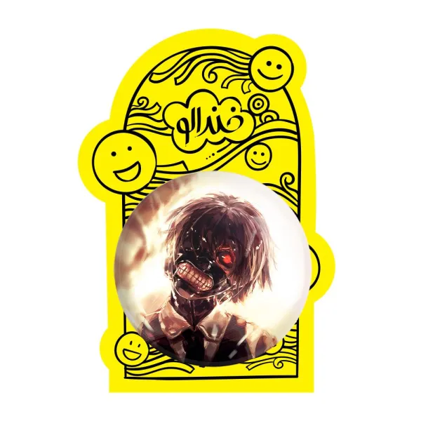 پیکسل بزرگ کانکی کن انیمه توکیو غول Tokyo Ghoul خندالو با روکش سلفون حرارتی مات مخملی ضدخش و قطعه پشتی فلزی تولید می شود. قطعات پشت پیکسل های خندالو با سوزن یک تکه ثابت و بدون لغزش و جا به جایی، ایستایی بسیار خوبی دارند که این مهم در تولید پیکسل های 58 میلیمتری نیز رعایت شده است.