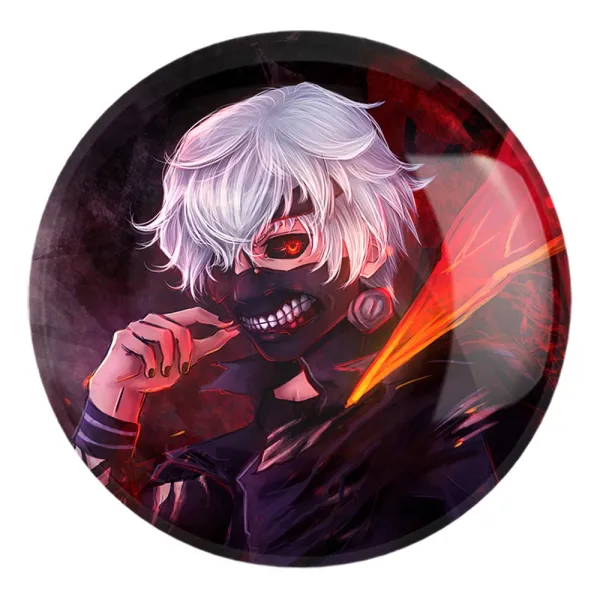 پیکسل بزرگ کانکی کن انیمه توکیو غول Tokyo Ghoul خندالو با روکش سلفون حرارتی مات مخملی ضدخش و قطعه پشتی فلزی تولید می شود. قطعات پشت پیکسل های خندالو با سوزن یک تکه ثابت و بدون لغزش و جا به جایی، ایستایی بسیار خوبی دارند که این مهم در تولید پیکسل های 58 میلیمتری نیز رعایت شده است.