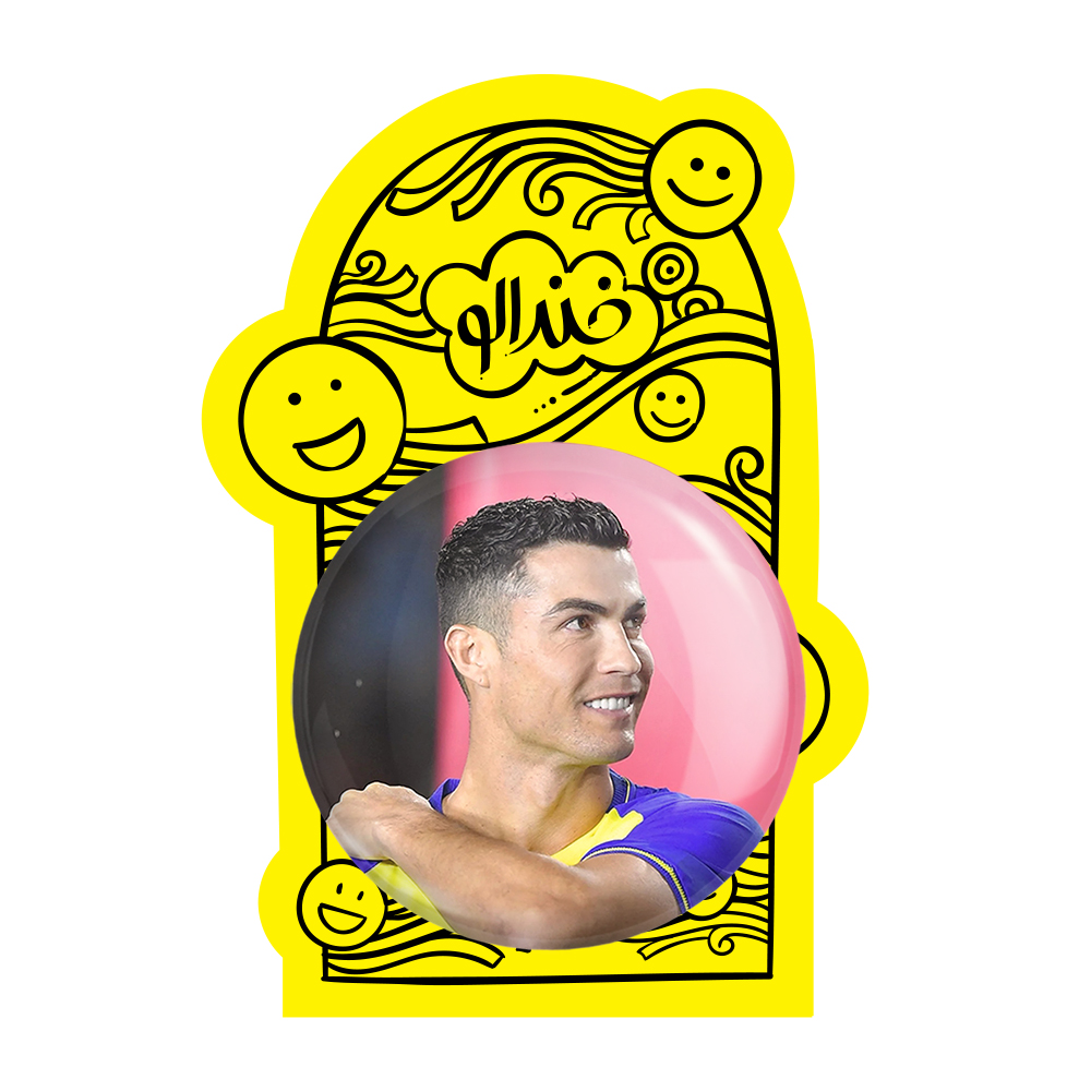 پیکسل بزرگ کریستیانو رونالدو خندالو با روکش سلفون حرارتی مات مخملی ضدخش و قطعه پشتی فلزی تولید می شود. قطعات پشت پیکسل های خندالو با سوزن یک تکه ثابت و بدون لغزش و جا به جایی، ایستایی بسیار خوبی دارند که این مهم در تولید پیکسل های 58 میلیمتری نیز رعایت شده است.