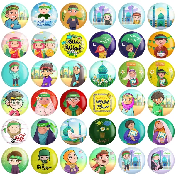بسته بندی های 36 عددی پیکسل بزرگ خندالو طرح کودکانه میلاد امام زمان نیمه شعبان با روکش سلفون حرارتی و قطعه پشتی فلزی تولید شده است. سوزن تعبیه شده در پشت پیکسل، کاملا تیز بوده و باعث نخ کش شدن و خرابی لباس و کیف در حین نصب نخواهد شد. ضمن اینکه سوزن یک تکه استفاده شده در پیکسل خندالو بدون لغزش و جابه جایی است.