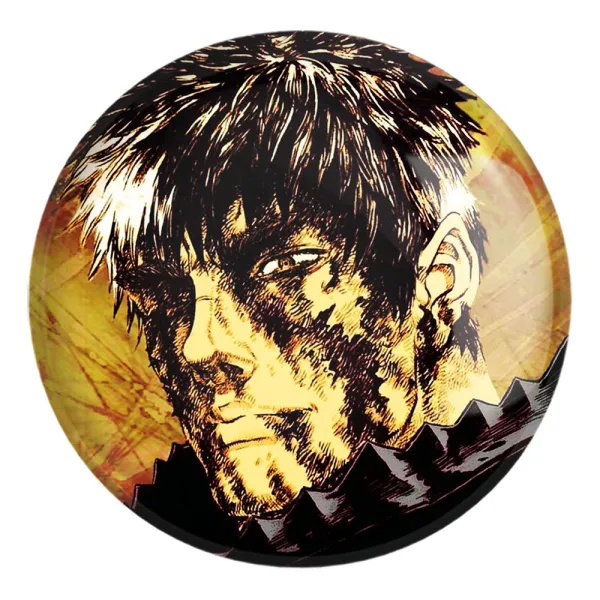 پیکسل بزرگ گاتس انیمه برزرک Berserk خندالو با روکش سلفون حرارتی مات مخملی ضدخش و قطعه پشتی فلزی تولید می شود. قطعات پشت پیکسل های خندالو با سوزن یک تکه ثابت و بدون لغزش و جا به جایی، ایستایی بسیار خوبی دارند که این مهم در تولید پیکسل های 58 میلیمتری نیز رعایت شده است.