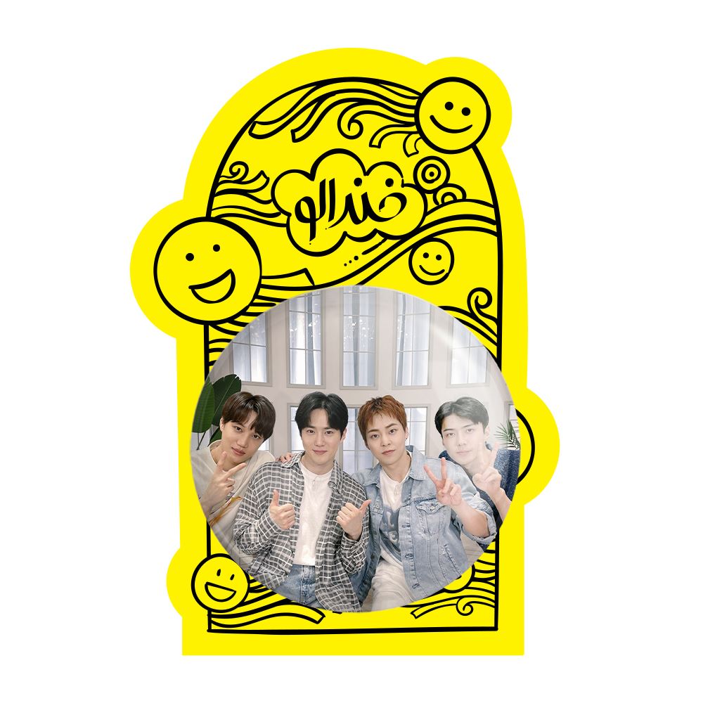 پیکسل بزرگ گروه اکسو EXO خندالو با روکش سلفون حرارتی مات مخملی ضدخش و قطعه پشتی فلزی تولید می شود. قطعات پشت پیکسل های خندالو با سوزن یک تکه ثابت و بدون لغزش و جا به جایی، ایستایی بسیار خوبی دارند که این مهم در تولید پیکسل های 58 میلیمتری نیز رعایت شده است.
