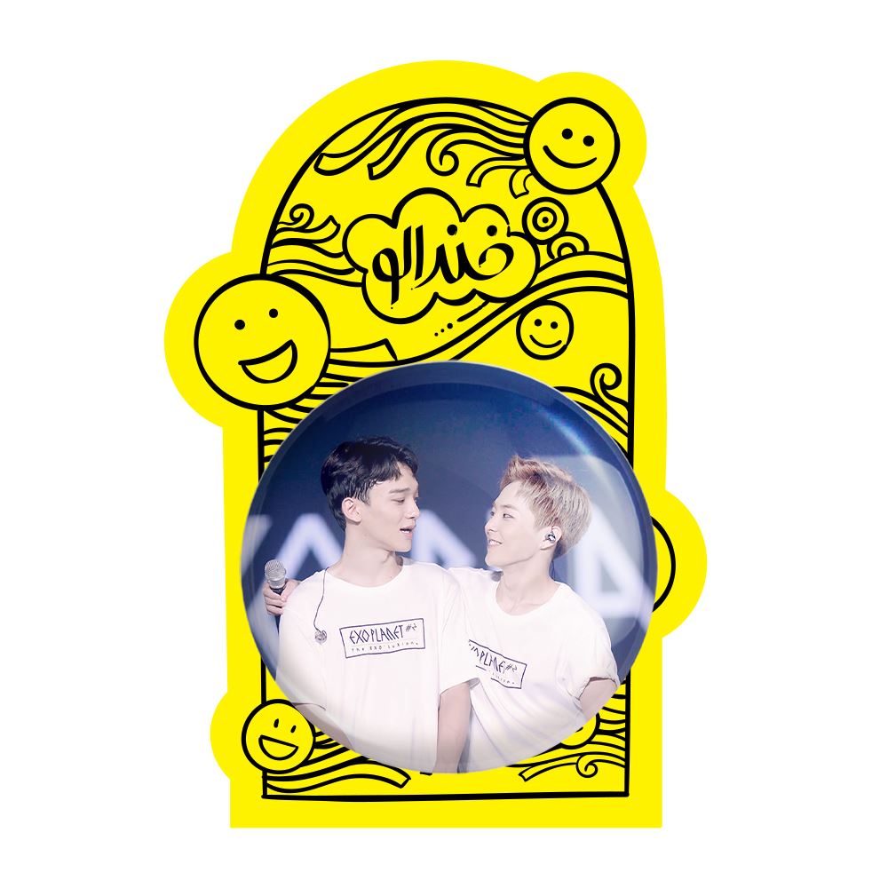 پیکسل بزرگ گروه اکسو EXO خندالو با روکش سلفون حرارتی مات مخملی ضدخش و قطعه پشتی فلزی تولید می شود. قطعات پشت پیکسل های خندالو با سوزن یک تکه ثابت و بدون لغزش و جا به جایی، ایستایی بسیار خوبی دارند که این مهم در تولید پیکسل های 58 میلیمتری نیز رعایت شده است.