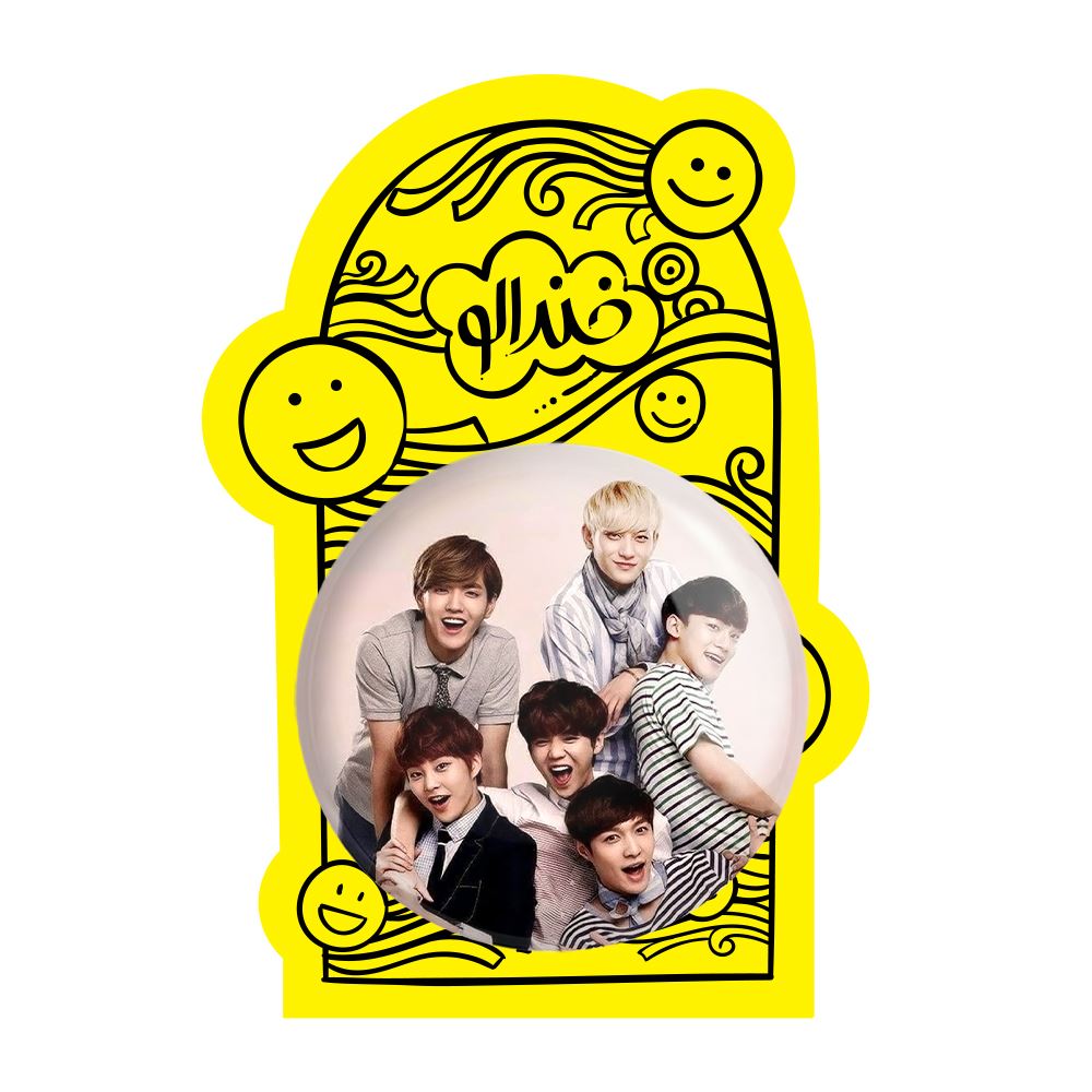 پیکسل بزرگ گروه اکسو EXO خندالو با روکش سلفون حرارتی مات مخملی ضدخش و قطعه پشتی فلزی تولید می شود. قطعات پشت پیکسل های خندالو با سوزن یک تکه ثابت و بدون لغزش و جا به جایی، ایستایی بسیار خوبی دارند که این مهم در تولید پیکسل های 58 میلیمتری نیز رعایت شده است.