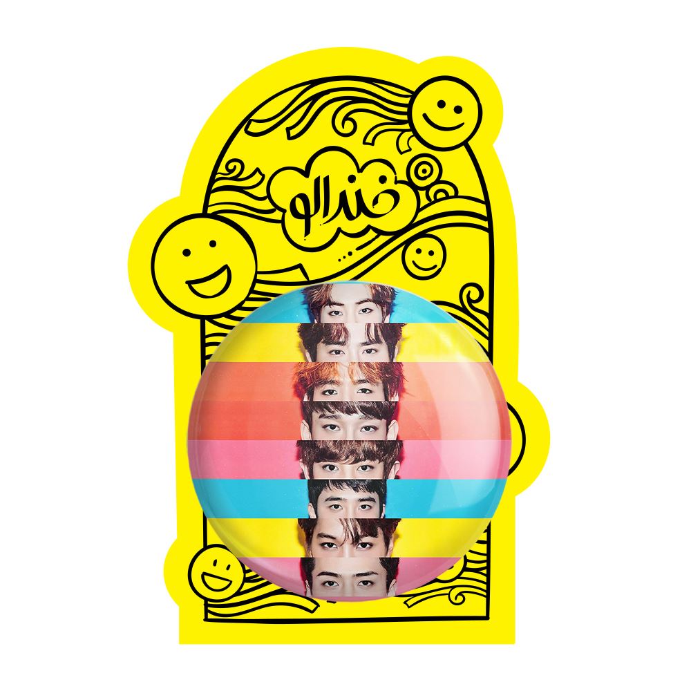 پیکسل بزرگ گروه موسیقی اکسو EXO خندالو با روکش سلفون حرارتی مات مخملی ضدخش و قطعه پشتی فلزی تولید می شود. قطعات پشت پیکسل های خندالو با سوزن یک تکه ثابت و بدون لغزش و جا به جایی، ایستایی بسیار خوبی دارند که این مهم در تولید پیکسل های 58 میلیمتری نیز رعایت شده است.