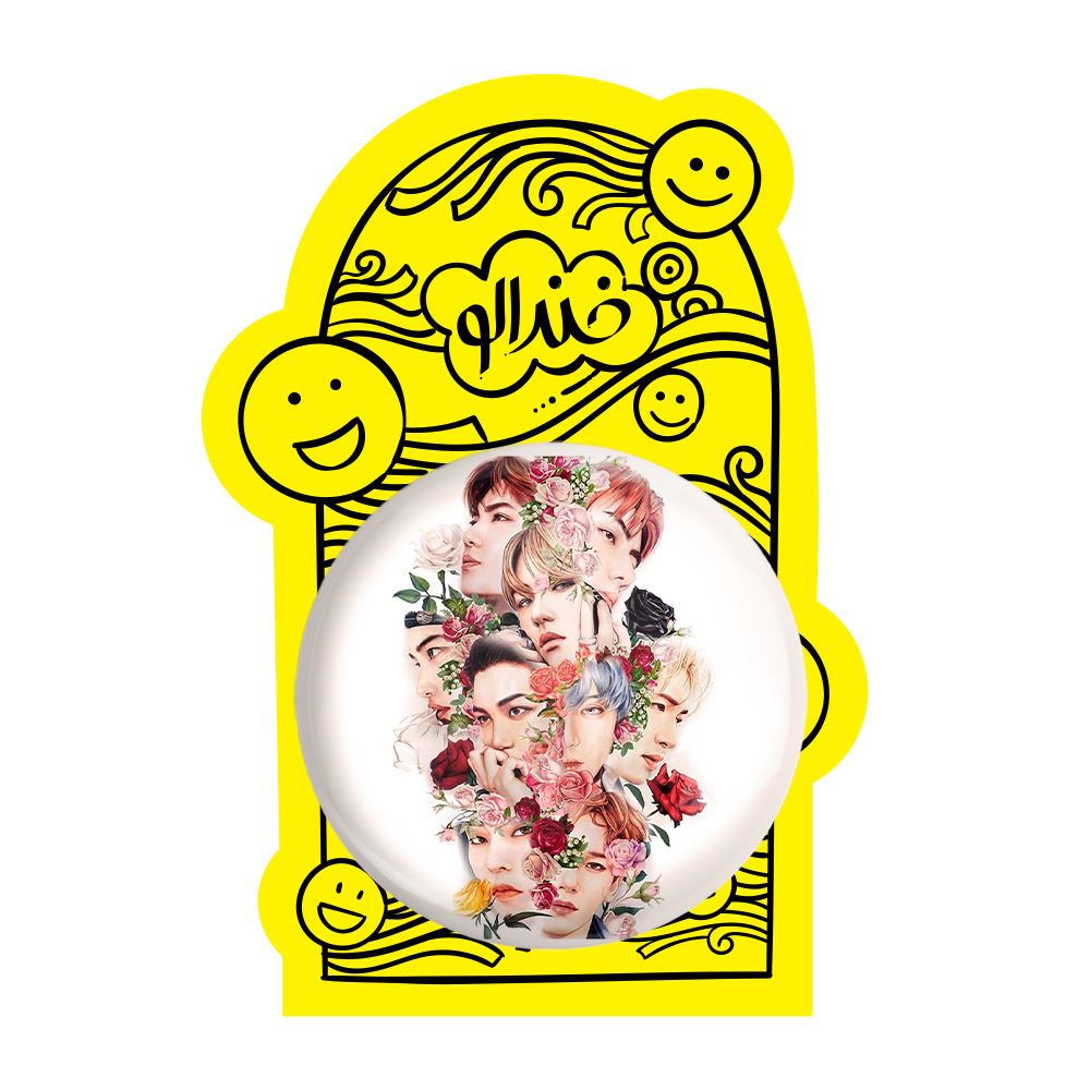 پیکسل بزرگ گروه موسیقی اکسو EXO خندالو با روکش سلفون حرارتی مات مخملی ضدخش و قطعه پشتی فلزی تولید می شود. قطعات پشت پیکسل های خندالو با سوزن یک تکه ثابت و بدون لغزش و جا به جایی، ایستایی بسیار خوبی دارند که این مهم در تولید پیکسل های 58 میلیمتری نیز رعایت شده است.