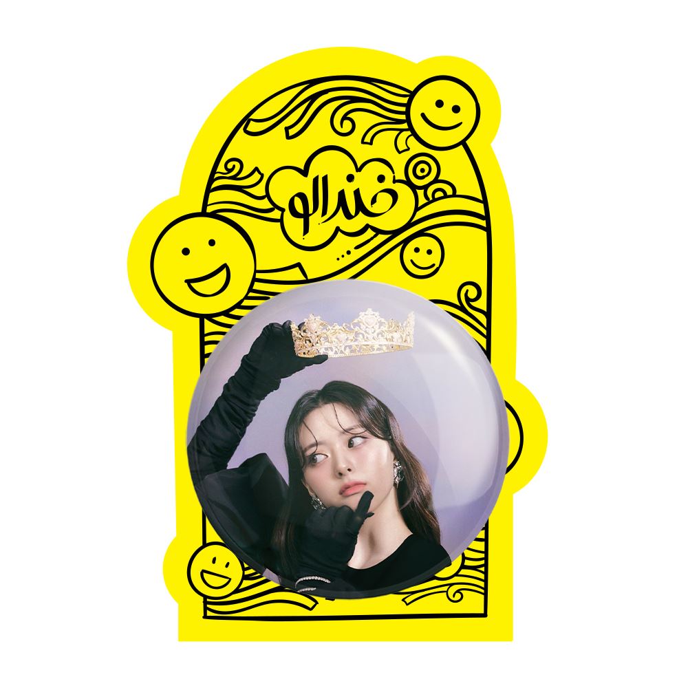 پیکسل بزرگ یونا گروه ایتزی ITZY خندالو با روکش سلفون حرارتی مات مخملی ضدخش و قطعه پشتی فلزی تولید می شود. قطعات پشت پیکسل های خندالو با سوزن یک تکه ثابت و بدون لغزش و جا به جایی، ایستایی بسیار خوبی دارند که این مهم در تولید پیکسل های 58 میلیمتری نیز رعایت شده است.