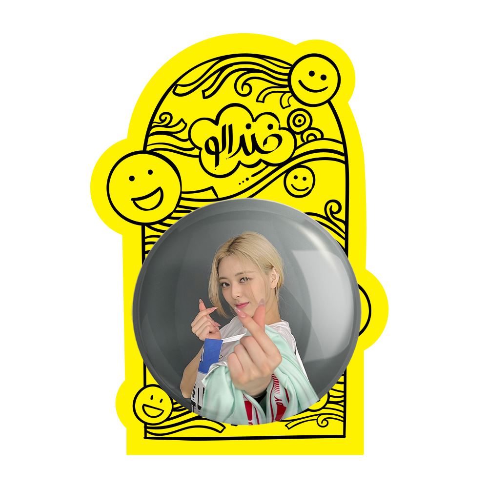 پیکسل بزرگ یونا گروه ایتزی ITZY خندالو با روکش سلفون حرارتی مات مخملی ضدخش و قطعه پشتی فلزی تولید می شود. قطعات پشت پیکسل های خندالو با سوزن یک تکه ثابت و بدون لغزش و جا به جایی، ایستایی بسیار خوبی دارند که این مهم در تولید پیکسل های 58 میلیمتری نیز رعایت شده است.