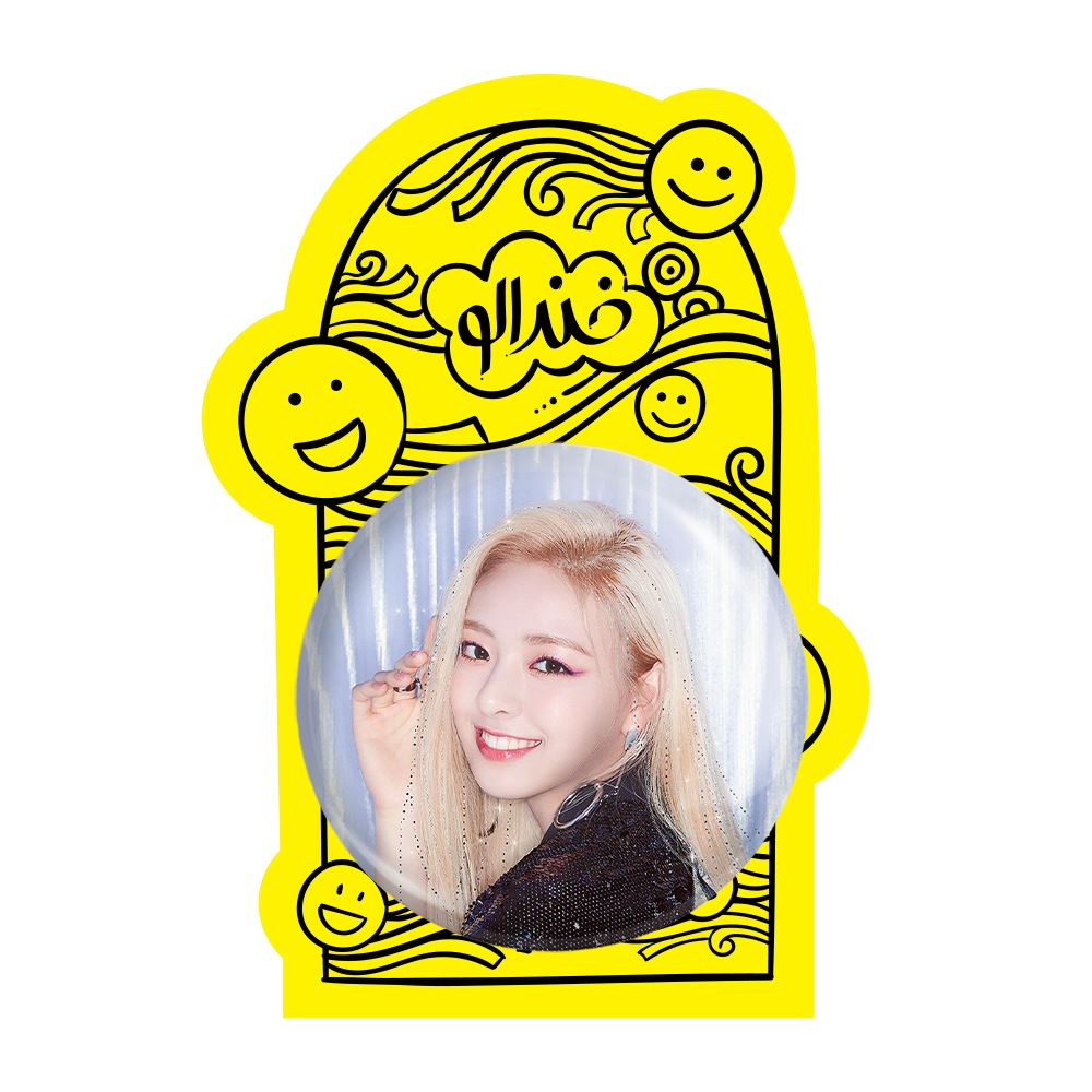 پیکسل بزرگ یونا گروه ایتزی ITZY خندالو با روکش سلفون حرارتی مات مخملی ضدخش و قطعه پشتی فلزی تولید می شود. قطعات پشت پیکسل های خندالو با سوزن یک تکه ثابت و بدون لغزش و جا به جایی، ایستایی بسیار خوبی دارند که این مهم در تولید پیکسل های 58 میلیمتری نیز رعایت شده است.