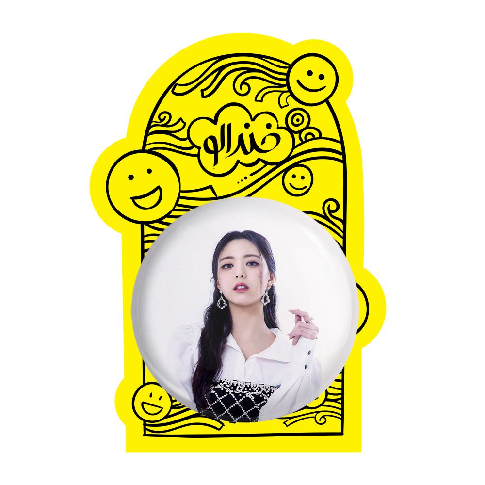 پیکسل بزرگ یونا گروه ایتزی ITZY خندالو با روکش سلفون حرارتی مات مخملی ضدخش و قطعه پشتی فلزی تولید می شود. قطعات پشت پیکسل های خندالو با سوزن یک تکه ثابت و بدون لغزش و جا به جایی، ایستایی بسیار خوبی دارند که این مهم در تولید پیکسل های 58 میلیمتری نیز رعایت شده است.