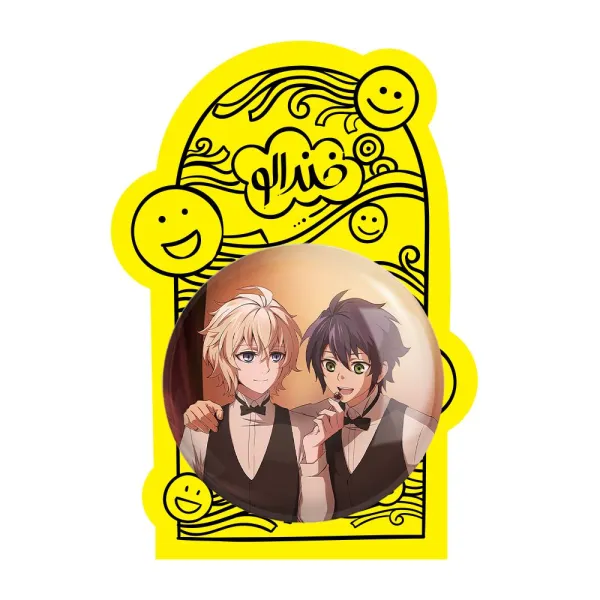 پیکسل بزرگ یویچیرو و میکائیل انیمه اسرافیل پایانی خندالو با روکش سلفون حرارتی مات مخملی ضدخش و قطعه پشتی فلزی تولید می شود. قطعات پشت پیکسل های خندالو با سوزن یک تکه ثابت و بدون لغزش و جا به جایی، ایستایی بسیار خوبی دارند که این مهم در تولید پیکسل های 58 میلیمتری نیز رعایت شده است.
