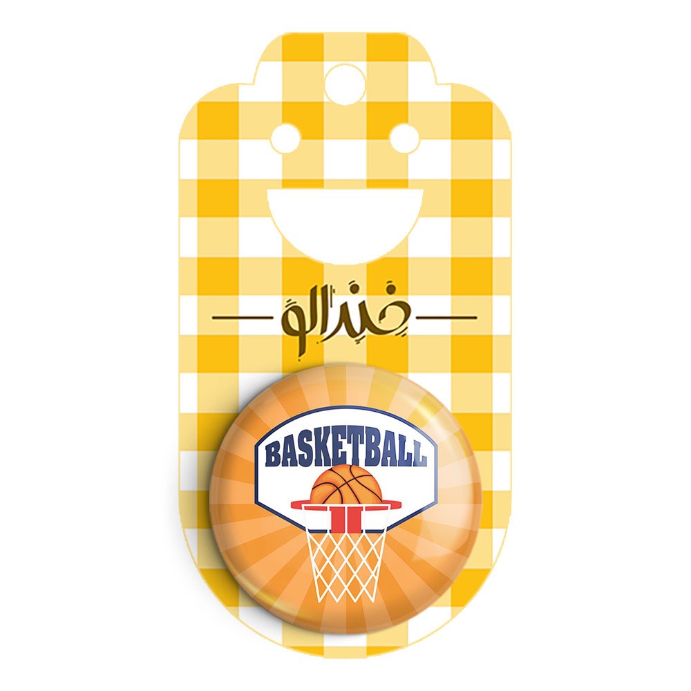 پیکسل 44 میلی متری بسکتبال Basketball خندالو با روکش سلفون حرارتی مات مخملی ضدخش و قطعه پشتی رنگی تولید شده است.پلاستیکی پشت پیکسل با سوزن یک تکه ثابت و بدون لغزش و جا به جایی، ایستایی بسیار بهتری نسبت به پشتی فلزی پیکسل دارند که این مهم در تولید این محصول نیز رعایت شده است.